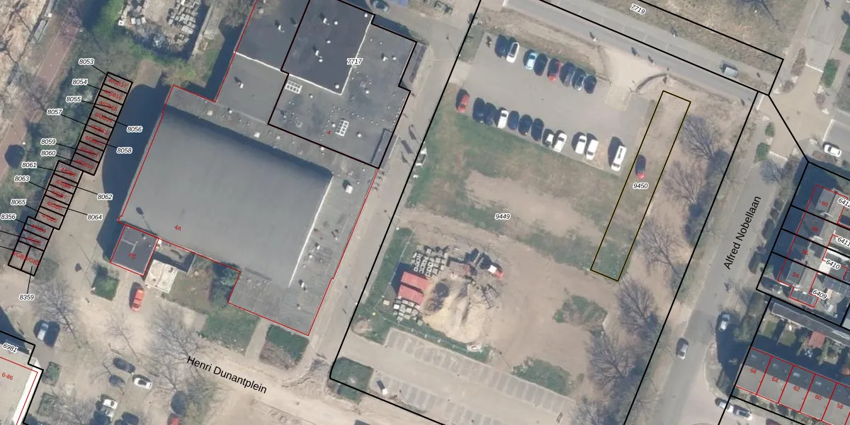 Het perceel waarop Henri Dunantplein 2-1 staat heeft een oppervlakte van 6638 m². Dit is een zeer groot perceel. De perceeloppervlakte wordt geregistreerd door het Kadaster. Gedetailleerde informatie over de maten van dit perceel kunt u vinden in het rapport Kadastrale kaart met maatvoering van Henri Dunantplein 2-1.