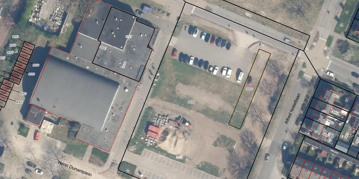 Het perceel waarop Henri Dunantplein 2-7 staat heeft een oppervlakte van 6638 m². Dit is een zeer groot perceel. De perceeloppervlakte wordt geregistreerd door het Kadaster. Gedetailleerde informatie over de maten van dit perceel kunt u vinden in het rapport Kadastrale kaart met maatvoering van Henri Dunantplein 2-7.