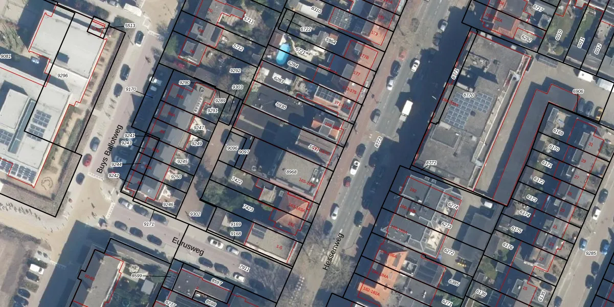 Het perceel waarop Hessenweg 167-A staat heeft een oppervlakte van 310 m². Dit is een groot perceel. De perceeloppervlakte wordt geregistreerd door het Kadaster. Gedetailleerde informatie over de maten van dit perceel kunt u vinden in het rapport Kadastrale kaart met maatvoering van Hessenweg 167-A.