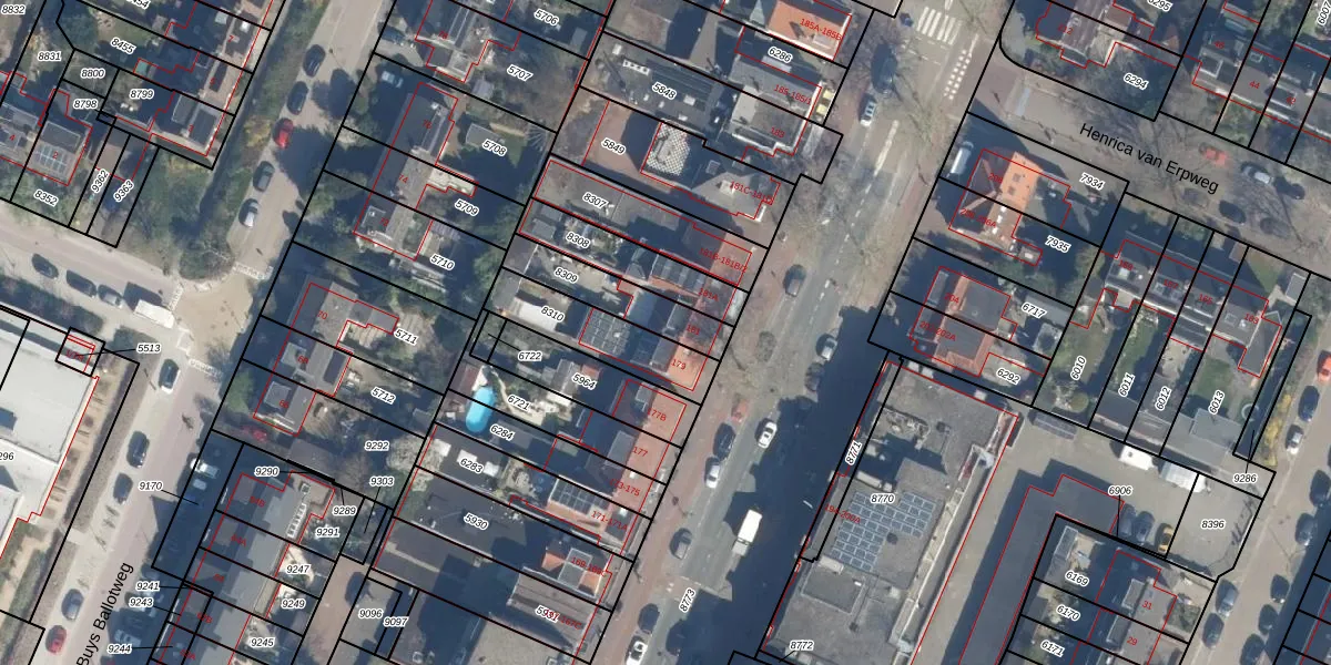 Het perceel waarop Hessenweg 181 staat heeft een oppervlakte van 209 m². Dit is een middelgroot perceel. De perceeloppervlakte wordt geregistreerd door het Kadaster. Gedetailleerde informatie over de maten van dit perceel kunt u vinden in het rapport Kadastrale kaart met maatvoering van Hessenweg 181.
