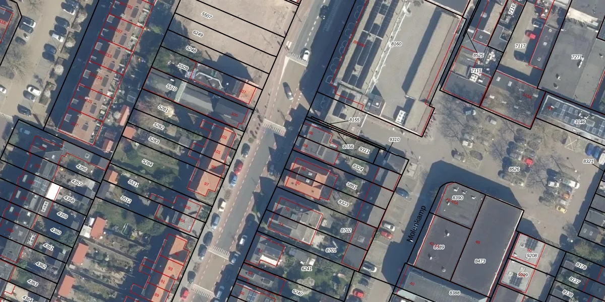 Gebruik de zoekbalk of klik op een perceel voor informatie over de adressen binnen dit perceel.
