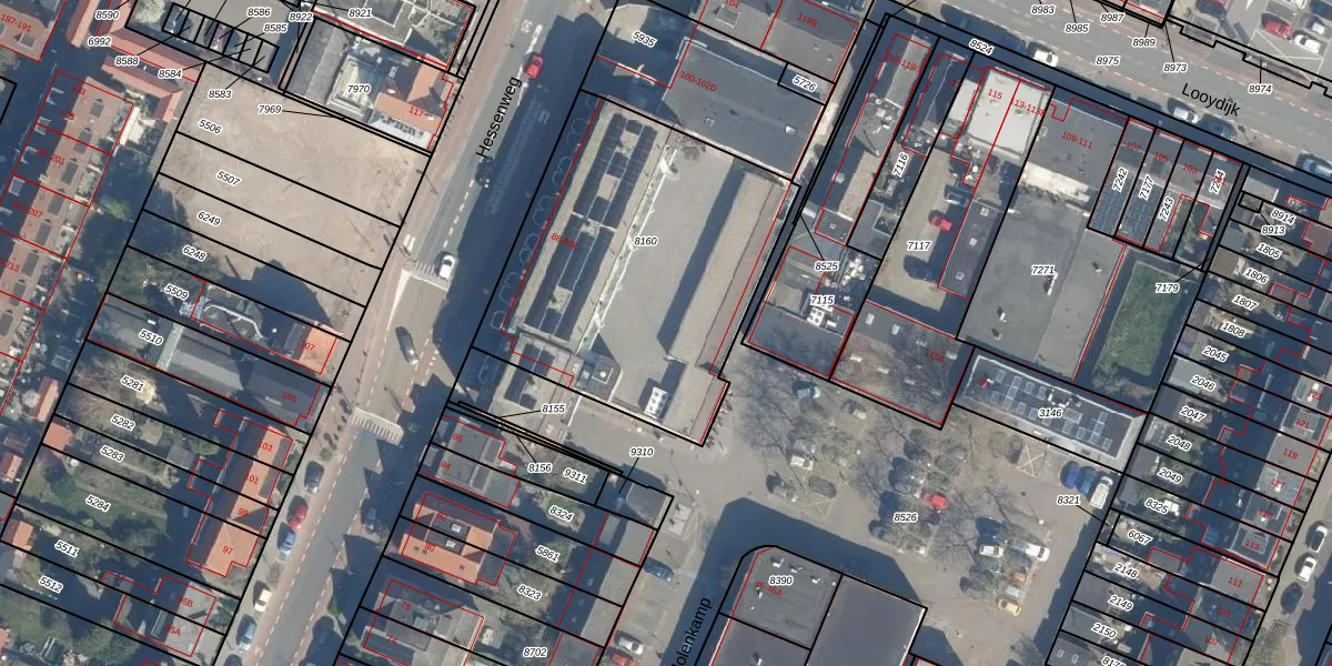 Het perceel waarop Hessenweg 90-E staat heeft een oppervlakte van 1550 m². Dit is een zeer groot perceel. De perceeloppervlakte wordt geregistreerd door het Kadaster. Gedetailleerde informatie over de maten van dit perceel kunt u vinden in het rapport Kadastrale kaart met maatvoering van Hessenweg 90-E.