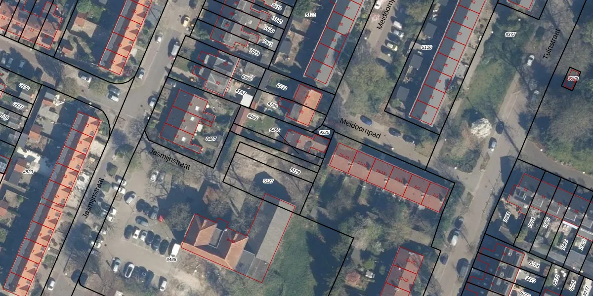 Het perceel waarop Jasmijnstraat 10 staat heeft een oppervlakte van 226 m². Dit is een middelgroot perceel. De perceeloppervlakte wordt geregistreerd door het Kadaster. Gedetailleerde informatie over de maten van dit perceel kunt u vinden in het rapport Kadastrale kaart met maatvoering van Jasmijnstraat 10.