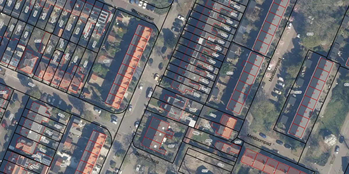Gebruik de zoekbalk of klik op een perceel voor informatie over de adressen binnen dit perceel.
