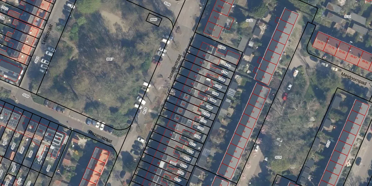 Het perceel waarop Jasmijnstraat 58 staat heeft een oppervlakte van 117 m². Dit is een middelgroot perceel. De perceeloppervlakte wordt geregistreerd door het Kadaster. Gedetailleerde informatie over de maten van dit perceel kunt u vinden in het rapport Kadastrale kaart met maatvoering van Jasmijnstraat 58.