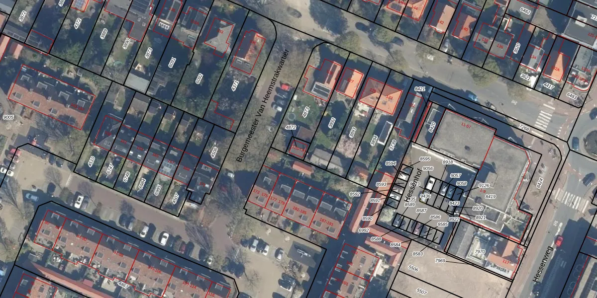 Gebruik de zoekbalk of klik op een perceel voor informatie over de adressen binnen dit perceel.