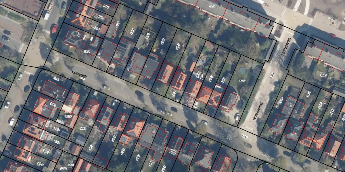 Het perceel waarop Looydijk 160 staat heeft een oppervlakte van 362 m². Dit is een groot perceel. De perceeloppervlakte wordt geregistreerd door het Kadaster. Gedetailleerde informatie over de maten van dit perceel kunt u vinden in het rapport Kadastrale kaart met maatvoering van Looydijk 160.