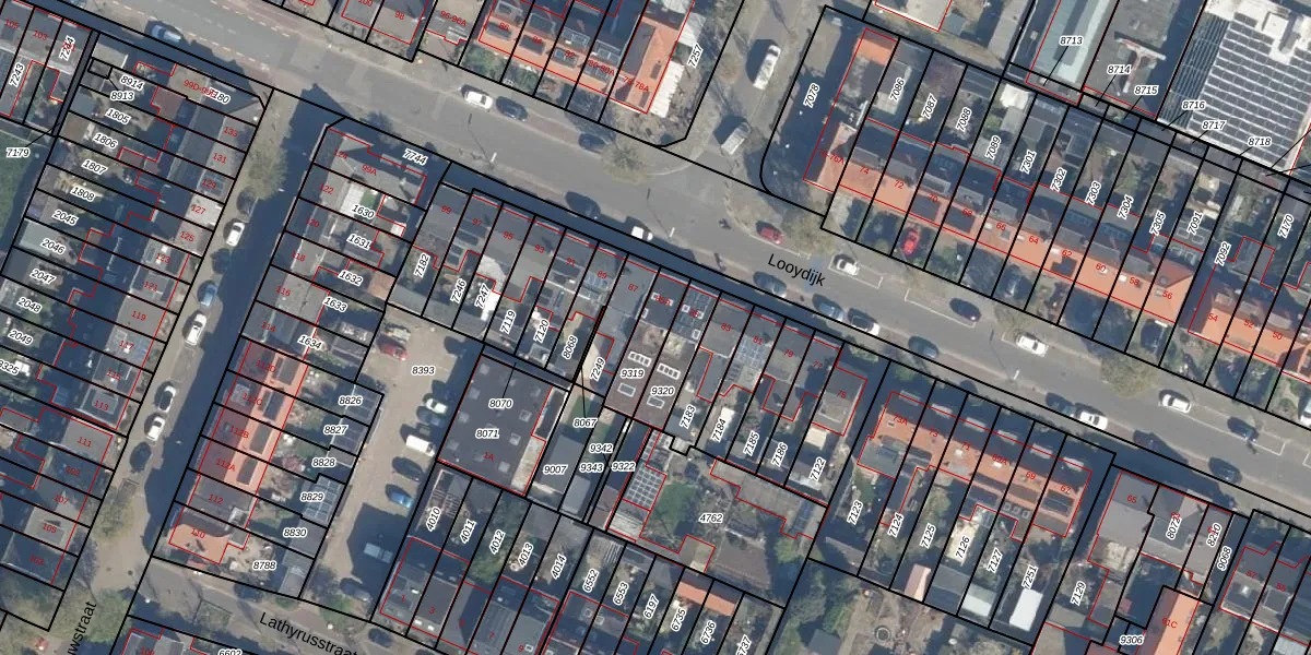 Gebruik de zoekbalk of klik op een perceel voor informatie over de adressen binnen dit perceel.