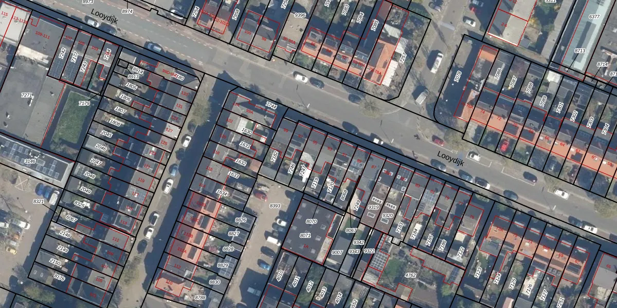 Gebruik de zoekbalk of klik op een perceel voor informatie over de adressen binnen dit perceel.