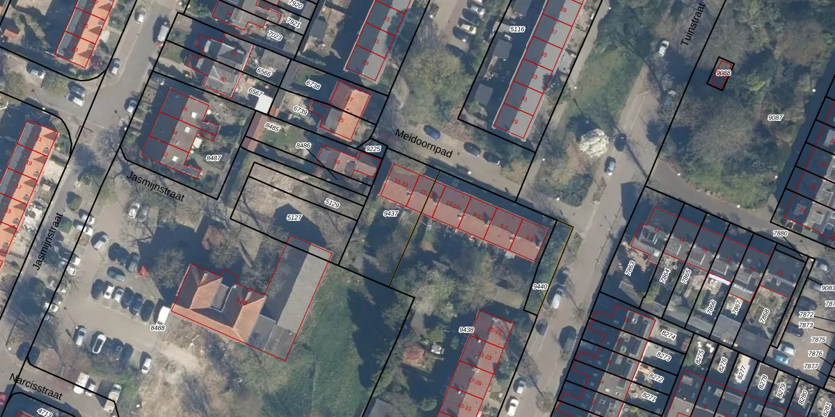 Het perceel waarop Meidoornpad 19 staat heeft een oppervlakte van 409 m². Dit is een groot perceel. De perceeloppervlakte wordt geregistreerd door het Kadaster. Gedetailleerde informatie over de maten van dit perceel kunt u vinden in het rapport Kadastrale kaart met maatvoering van Meidoornpad 19.