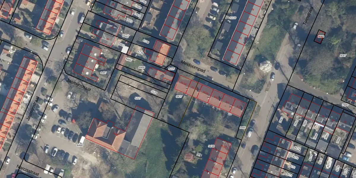 Het perceel waarop Meidoornpad 23 staat heeft een oppervlakte van 409 m². Dit is een groot perceel. De perceeloppervlakte wordt geregistreerd door het Kadaster. Gedetailleerde informatie over de maten van dit perceel kunt u vinden in het rapport Kadastrale kaart met maatvoering van Meidoornpad 23.