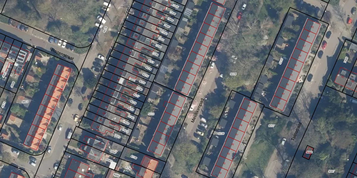 Het perceel waarop Meidoornpad 41 staat heeft een oppervlakte van 4312 m². Dit is een zeer groot perceel. De perceeloppervlakte wordt geregistreerd door het Kadaster. Gedetailleerde informatie over de maten van dit perceel kunt u vinden in het rapport Kadastrale kaart met maatvoering van Meidoornpad 41.