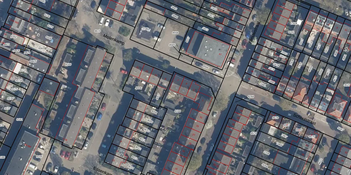 Het perceel waarop Molenkamp 7 staat heeft een oppervlakte van 1445 m². Dit is een zeer groot perceel. De perceeloppervlakte wordt geregistreerd door het Kadaster. Gedetailleerde informatie over de maten van dit perceel kunt u vinden in het rapport Kadastrale kaart met maatvoering van Molenkamp 7.
