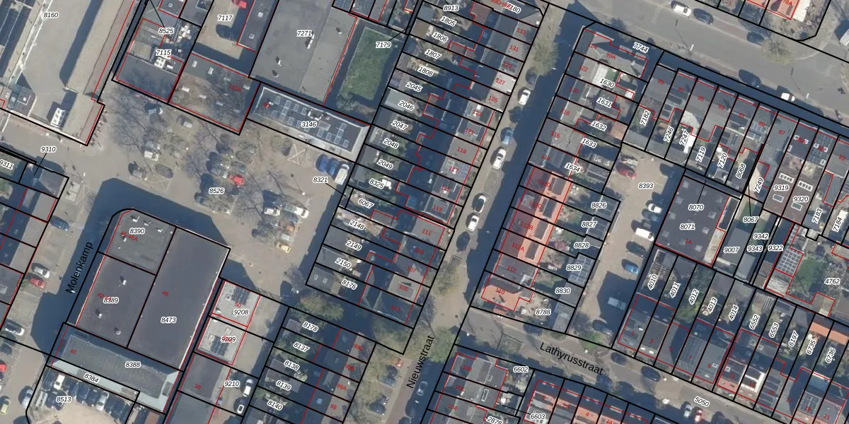 Het perceel waarop Nieuwstraat 113 staat heeft een oppervlakte van 151 m². Dit is een middelgroot perceel. De perceeloppervlakte wordt geregistreerd door het Kadaster. Gedetailleerde informatie over de maten van dit perceel kunt u vinden in het rapport Kadastrale kaart met maatvoering van Nieuwstraat 113.