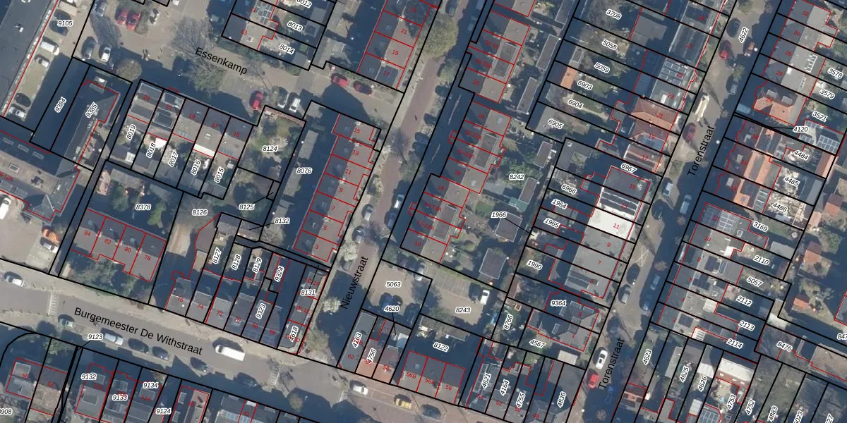 Het perceel waarop Nieuwstraat 14-A staat heeft een oppervlakte van 1940 m². Dit is een zeer groot perceel. De perceeloppervlakte wordt geregistreerd door het Kadaster. Gedetailleerde informatie over de maten van dit perceel kunt u vinden in het rapport Kadastrale kaart met maatvoering van Nieuwstraat 14-A.