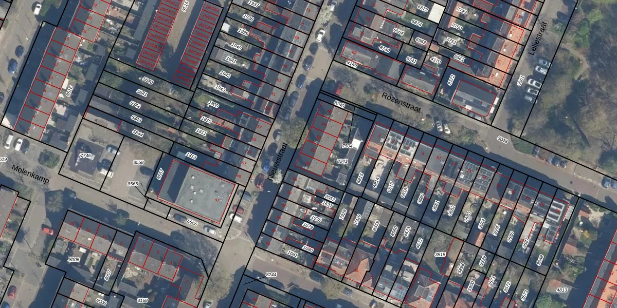 Het perceel waarop Nieuwstraat 60 staat heeft een oppervlakte van 499 m². Dit is een groot perceel. De perceeloppervlakte wordt geregistreerd door het Kadaster. Gedetailleerde informatie over de maten van dit perceel kunt u vinden in het rapport Kadastrale kaart met maatvoering van Nieuwstraat 60.