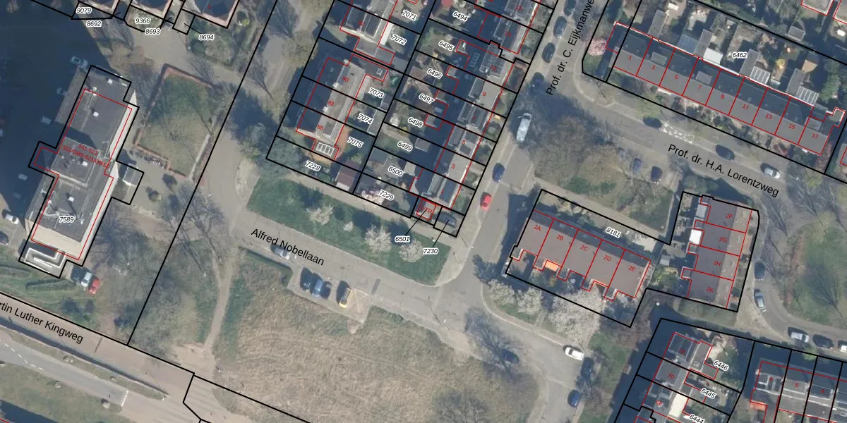 Gebruik de zoekbalk of klik op een perceel voor informatie over de adressen binnen dit perceel.