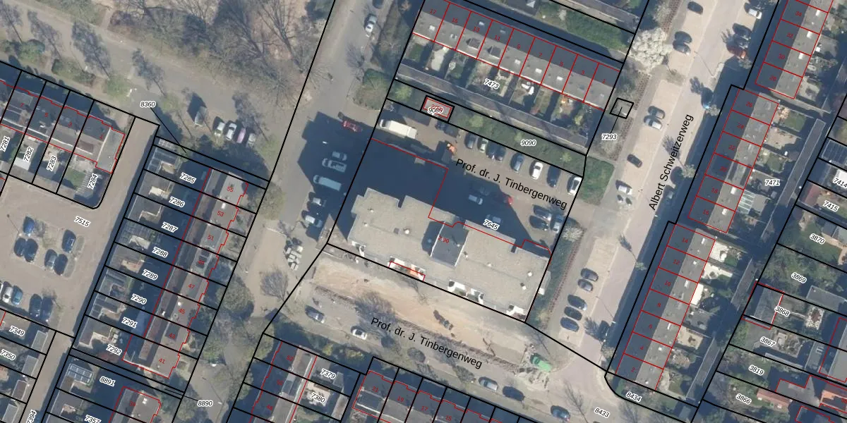 Het perceel waarop Prof. dr. J. Tinbergenweg 28 staat heeft een oppervlakte van 1860 m². Dit is een zeer groot perceel. De perceeloppervlakte wordt geregistreerd door het Kadaster. Gedetailleerde informatie over de maten van dit perceel kunt u vinden in het rapport Kadastrale kaart met maatvoering van Prof. dr. J. Tinbergenweg 28.