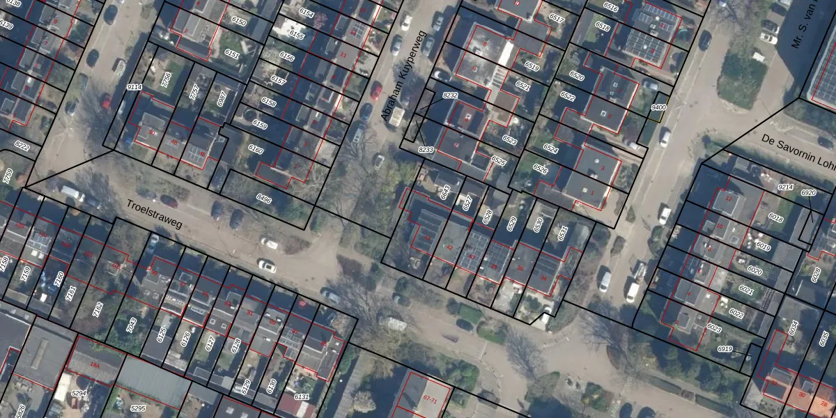 Het perceel waarop Troelstraweg 44 staat heeft een oppervlakte van 293 m². Dit is een middelgroot perceel. De perceeloppervlakte wordt geregistreerd door het Kadaster. Gedetailleerde informatie over de maten van dit perceel kunt u vinden in het rapport Kadastrale kaart met maatvoering van Troelstraweg 44.
