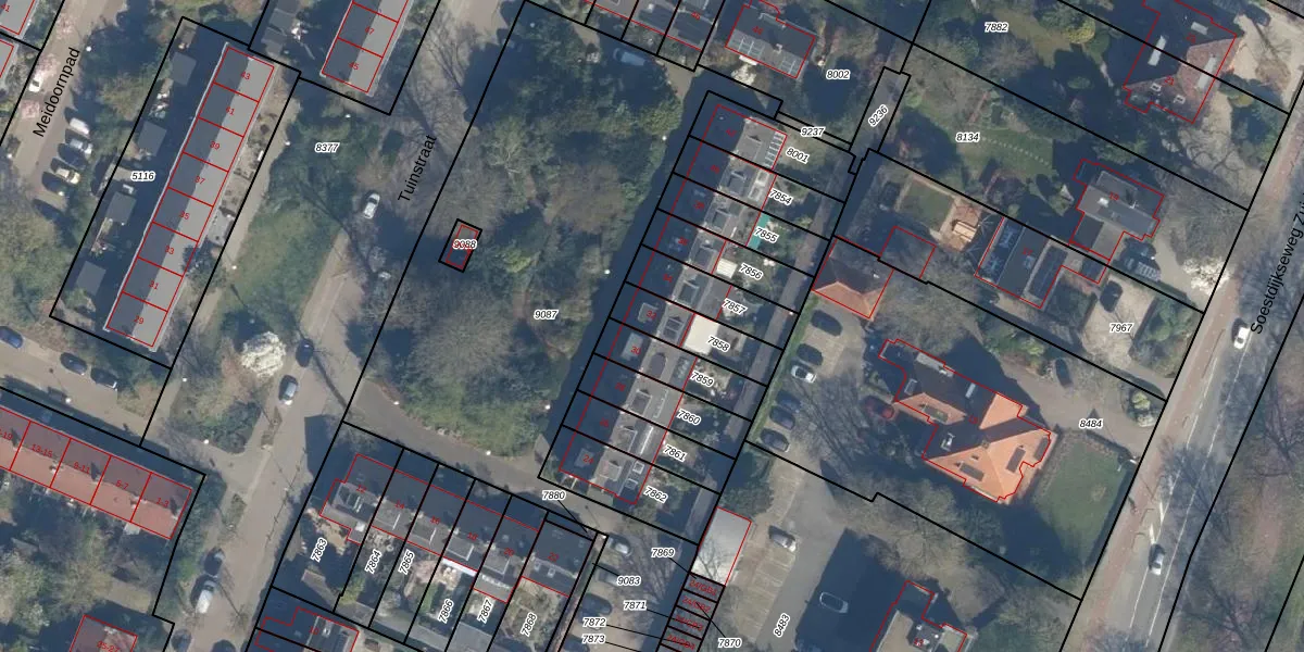 Gebruik de zoekbalk of klik op een perceel voor informatie over de adressen binnen dit perceel.