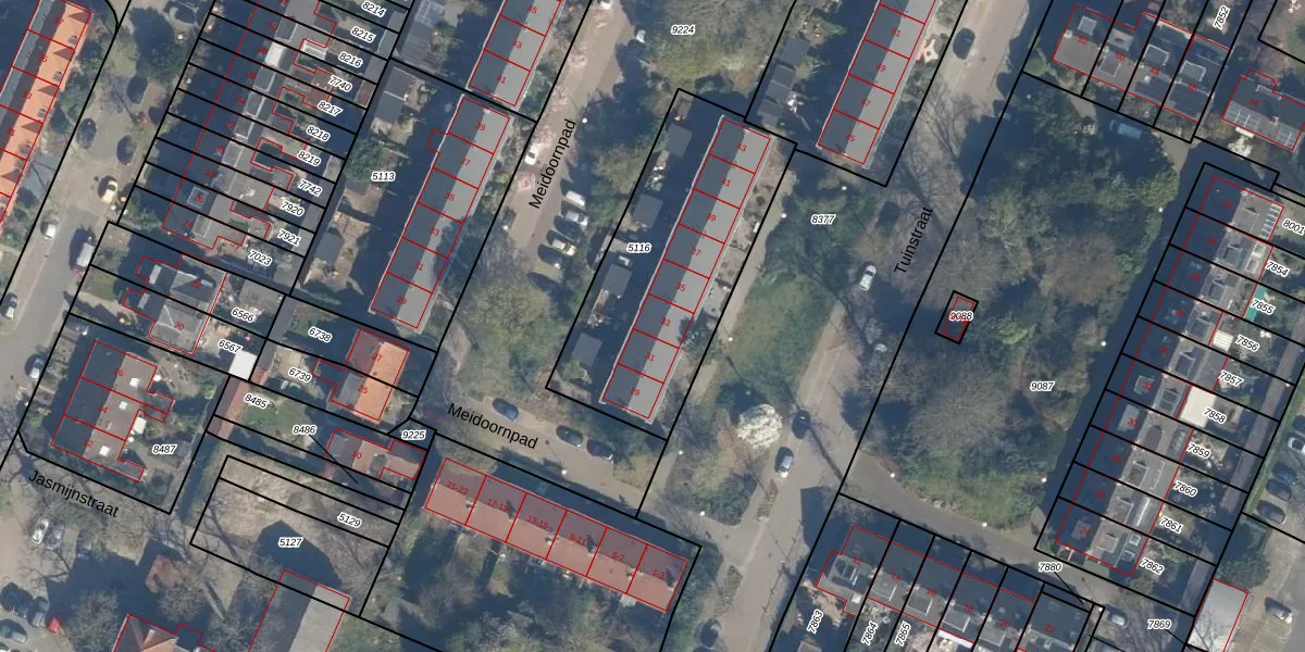 Het perceel waarop Tuinstraat 33 staat heeft een oppervlakte van 1010 m². Dit is een zeer groot perceel. De perceeloppervlakte wordt geregistreerd door het Kadaster. Gedetailleerde informatie over de maten van dit perceel kunt u vinden in het rapport Kadastrale kaart met maatvoering van Tuinstraat 33.