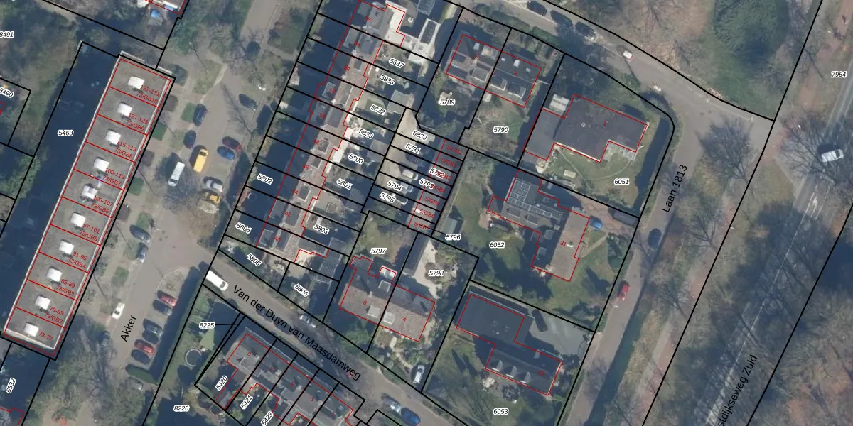 Gebruik de zoekbalk of klik op een perceel voor informatie over de adressen binnen dit perceel.