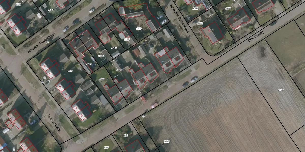 Het perceel waarop Bovenweg 15 staat heeft een oppervlakte van 1525 m². Dit is een zeer groot perceel. De perceeloppervlakte wordt geregistreerd door het Kadaster. Gedetailleerde informatie over de maten van dit perceel kunt u vinden in het rapport Kadastrale kaart met maatvoering van Bovenweg 15.