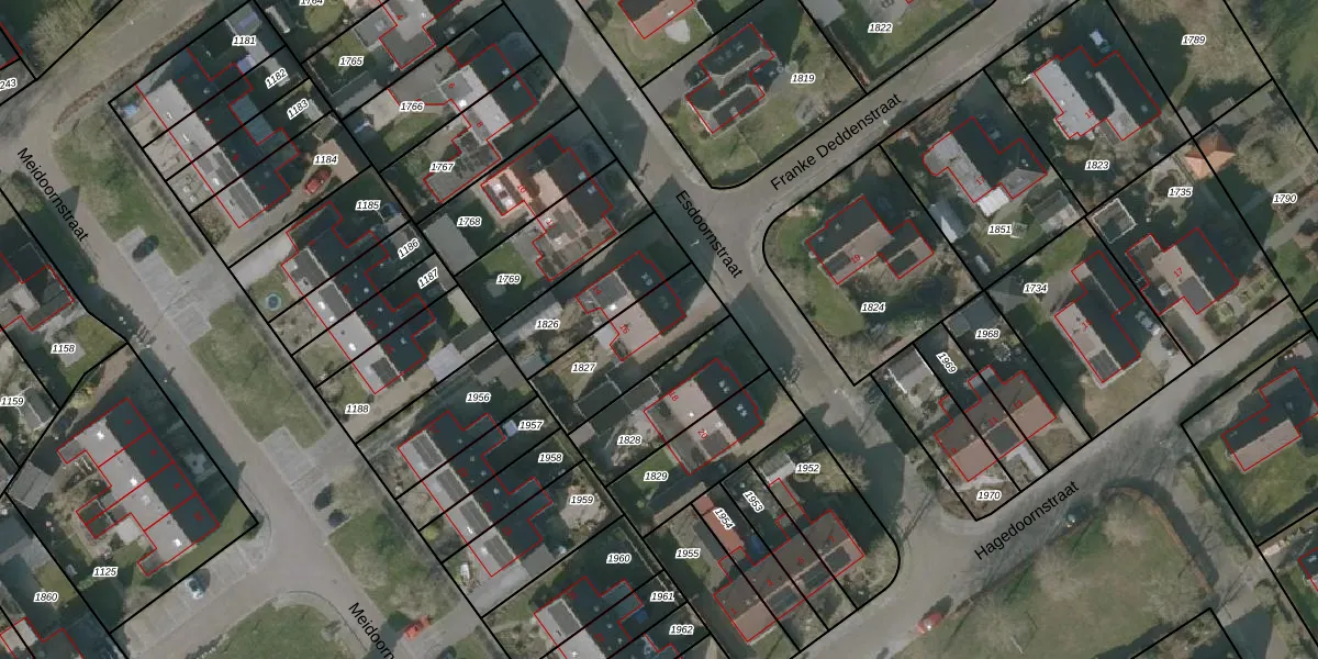 Het perceel waarop Esdoornstraat 16 staat heeft een oppervlakte van 313 m². Dit is een groot perceel. De perceeloppervlakte wordt geregistreerd door het Kadaster. Gedetailleerde informatie over de maten van dit perceel kunt u vinden in het rapport Kadastrale kaart met maatvoering van Esdoornstraat 16.
