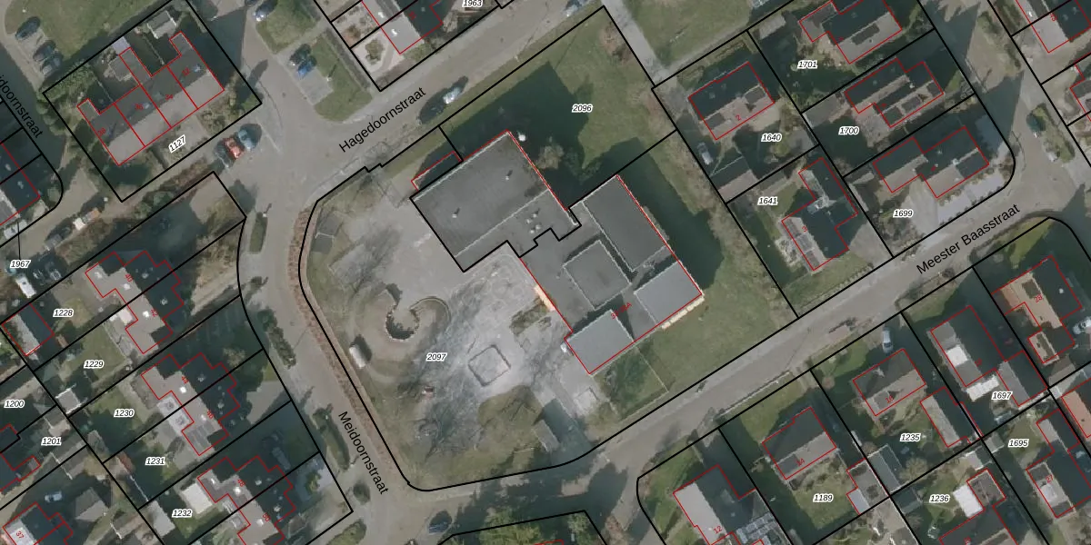 Het perceel waarop Meidoornstraat 33 staat heeft een oppervlakte van 3585 m². Dit is een zeer groot perceel. De perceeloppervlakte wordt geregistreerd door het Kadaster. Gedetailleerde informatie over de maten van dit perceel kunt u vinden in het rapport Kadastrale kaart met maatvoering van Meidoornstraat 33.
