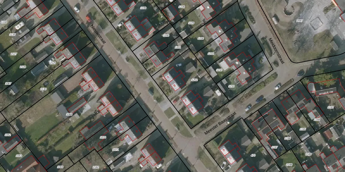 Het perceel waarop Nieuwstraat 39 staat heeft een oppervlakte van 1055 m². Dit is een zeer groot perceel. De perceeloppervlakte wordt geregistreerd door het Kadaster. Gedetailleerde informatie over de maten van dit perceel kunt u vinden in het rapport Kadastrale kaart met maatvoering van Nieuwstraat 39.