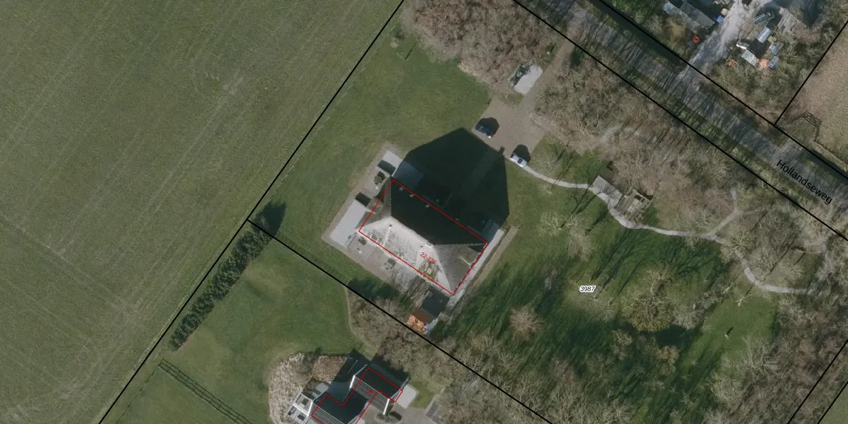 Het perceel waarop Hollandseweg 22-E staat heeft een oppervlakte van 1,0 ha. Dit is een zeer groot perceel. De perceeloppervlakte wordt geregistreerd door het Kadaster. Gedetailleerde informatie over de maten van dit perceel kunt u vinden in het rapport Kadastrale kaart met maatvoering van Hollandseweg 22-E.