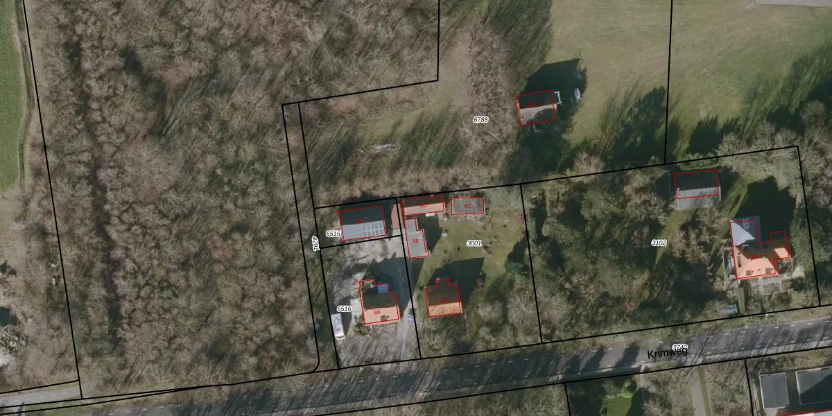 Het perceel waarop Krimweg 60 staat heeft een oppervlakte van 1175 m². Dit is een zeer groot perceel. De perceeloppervlakte wordt geregistreerd door het Kadaster. Gedetailleerde informatie over de maten van dit perceel kunt u vinden in het rapport Kadastrale kaart met maatvoering van Krimweg 60.