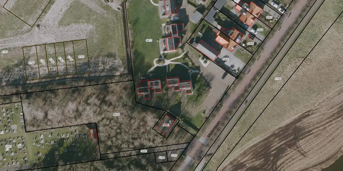 Het perceel waarop Molenlaan 32 staat heeft een oppervlakte van 4495 m². Dit is een zeer groot perceel. De perceeloppervlakte wordt geregistreerd door het Kadaster. Gedetailleerde informatie over de maten van dit perceel kunt u vinden in het rapport Kadastrale kaart met maatvoering van Molenlaan 32.