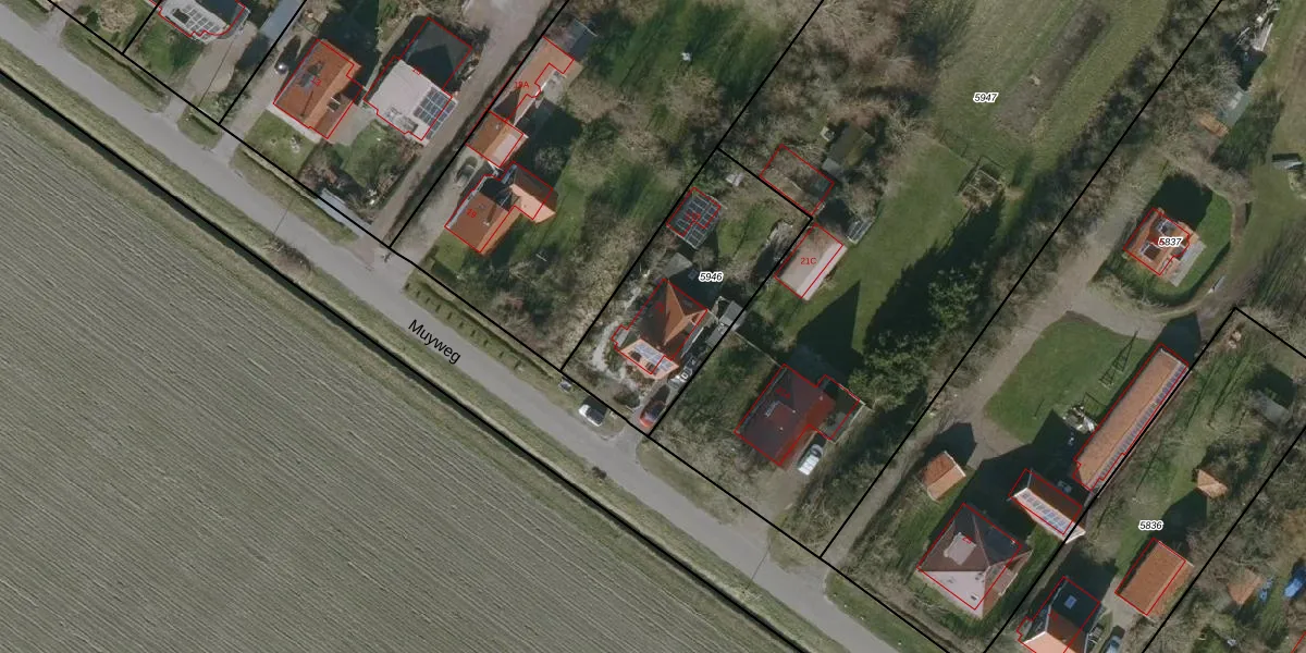 Muyweg 21 is gelegen op kadastraal perceel TEL00A5946. Deze kadastrale aanduiding is uniek en wordt gebruikt door het Kadaster om eigendomsrechten en andere zakelijke rechten vast te leggen. Het perceel maakt onderdeel uit van de kadastrale gemeente Texel.