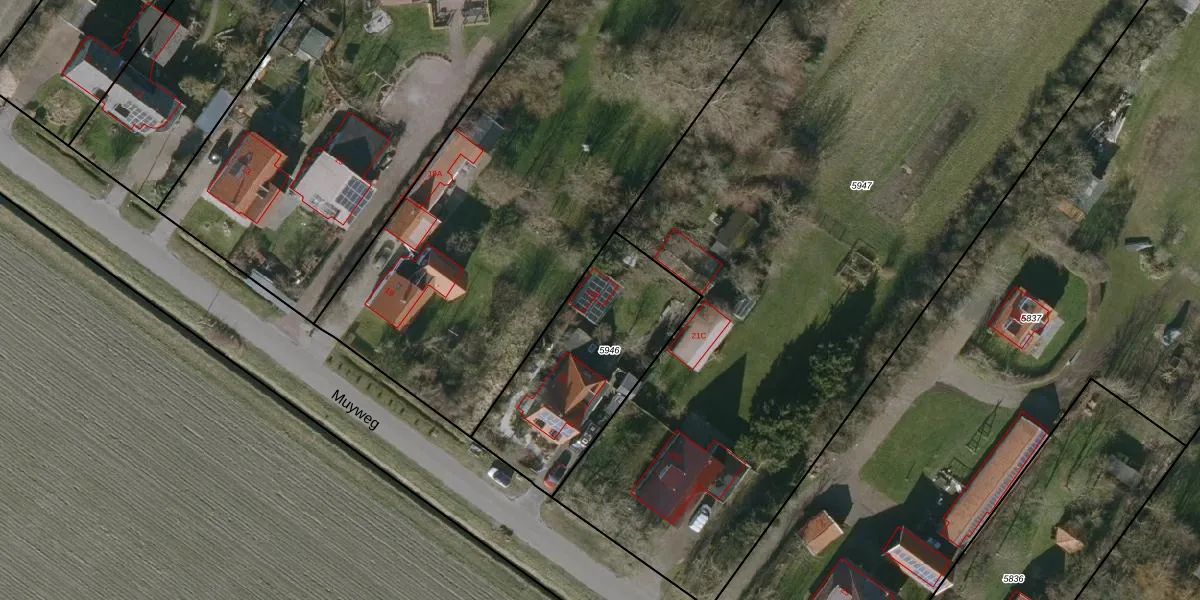 Muyweg 21-B is gelegen op kadastraal perceel TEL00A5946. Deze kadastrale aanduiding is uniek en wordt gebruikt door het Kadaster om eigendomsrechten en andere zakelijke rechten vast te leggen. Het perceel maakt onderdeel uit van de kadastrale gemeente Texel.