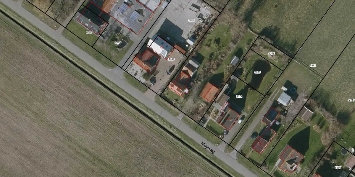 Het perceel waarop Muyweg 43 staat heeft een oppervlakte van 6180 m². Dit is een zeer groot perceel. De perceeloppervlakte wordt geregistreerd door het Kadaster. Gedetailleerde informatie over de maten van dit perceel kunt u vinden in het rapport Kadastrale kaart met maatvoering van Muyweg 43.