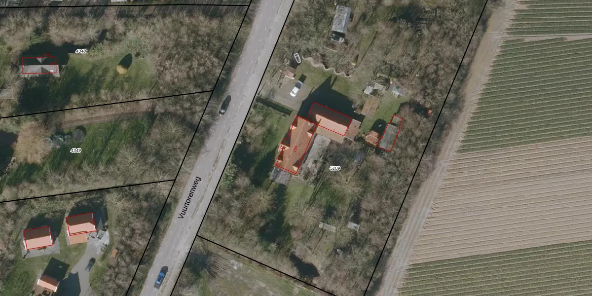 Vuurtorenweg 100 is gelegen op kadastraal perceel TEL00A5109. Deze kadastrale aanduiding is uniek en wordt gebruikt door het Kadaster om eigendomsrechten en andere zakelijke rechten vast te leggen. Het perceel maakt onderdeel uit van de kadastrale gemeente Texel.