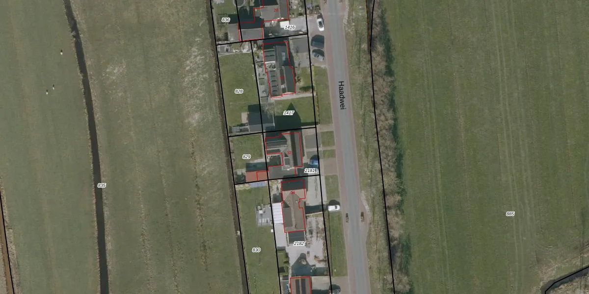 Haadwei 32 is gelegen op kadastraal perceel AKW00M2181. Deze kadastrale aanduiding is uniek en wordt gebruikt door het Kadaster om eigendomsrechten en andere zakelijke rechten vast te leggen. Het perceel maakt onderdeel uit van de kadastrale gemeente Akkerwoude.
