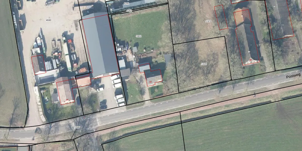 Postweg 42 is gelegen op kadastraal perceel BNV00E3301. Deze kadastrale aanduiding is uniek en wordt gebruikt door het Kadaster om eigendomsrechten en andere zakelijke rechten vast te leggen. Het perceel maakt onderdeel uit van de kadastrale gemeente Barneveld.