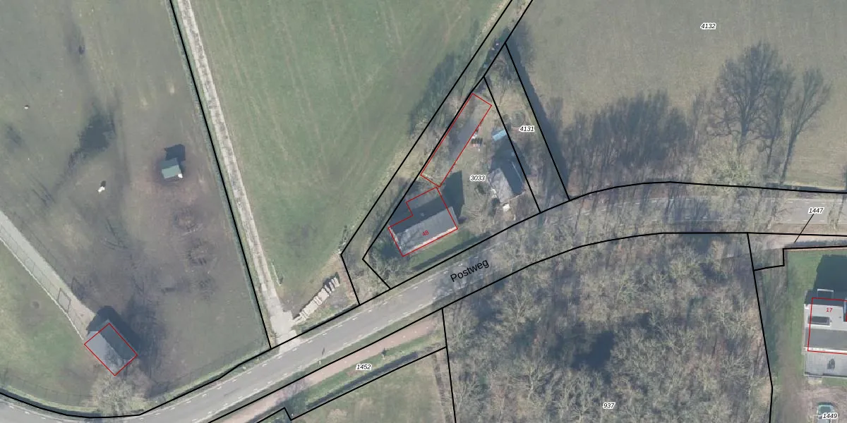 Het perceel waarop Postweg 48 staat heeft een oppervlakte van 913 m². Dit is een groot perceel. De perceeloppervlakte wordt geregistreerd door het Kadaster. Gedetailleerde informatie over de maten van dit perceel kunt u vinden in het rapport Kadastrale kaart met maatvoering van Postweg 48.