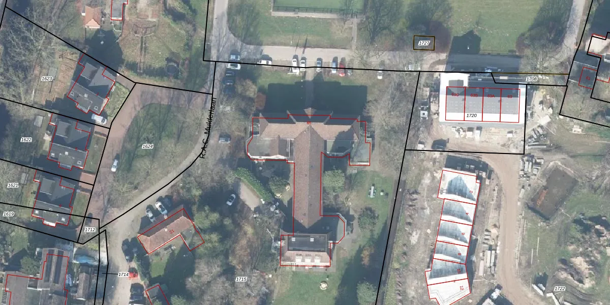 Het adres is gelegen op perceel 1715 in de sectie F en de kadastrale gemeente Barneveld. De kadastrale aanduiding is aldus BNV00-F-1715. Het perceel is met 9564 m² relatief groot. Het gemiddelde ligt in de kadastrale gemeente Barneveld op 3133,96 m². Het grootste perceel in de kadastrale gemeente is 23,8 ha. Het kleinste perceel heeft een oppervlakte van 0 m². Op het perceel liggen in totaal 3 adressen. De huidige grenzen van het perceel zijn digitaal in de Basisregistratie Kadaster (BRK) geregistreerd op 09-04-2024.