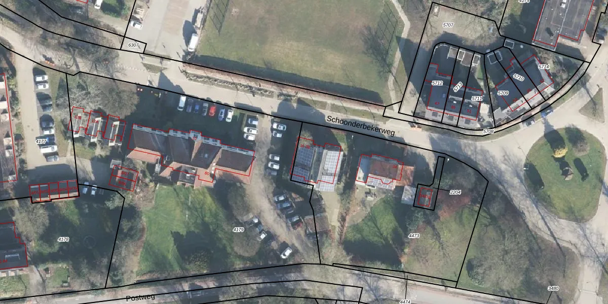 Schoonderbekerweg 16 is gelegen op kadastraal perceel BNV00E4473. Deze kadastrale aanduiding is uniek en wordt gebruikt door het Kadaster om eigendomsrechten en andere zakelijke rechten vast te leggen. Het perceel maakt onderdeel uit van de kadastrale gemeente Barneveld.