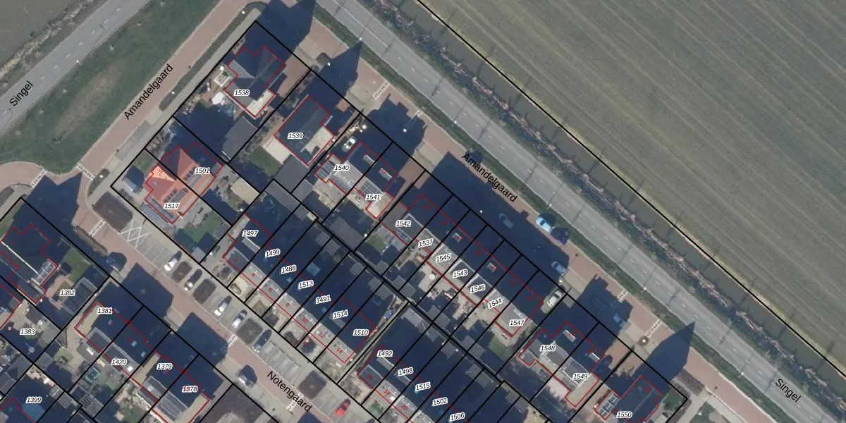 Gebruik de zoekbalk of klik op een perceel voor informatie over de adressen binnen dit perceel.