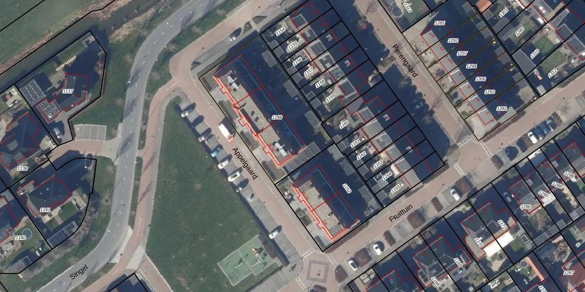 Het perceel waarop Appelgaard 20 staat heeft een oppervlakte van 1150 m². Dit is een zeer groot perceel. De perceeloppervlakte wordt geregistreerd door het Kadaster. Gedetailleerde informatie over de maten van dit perceel kunt u vinden in het rapport Kadastrale kaart met maatvoering van Appelgaard 20.