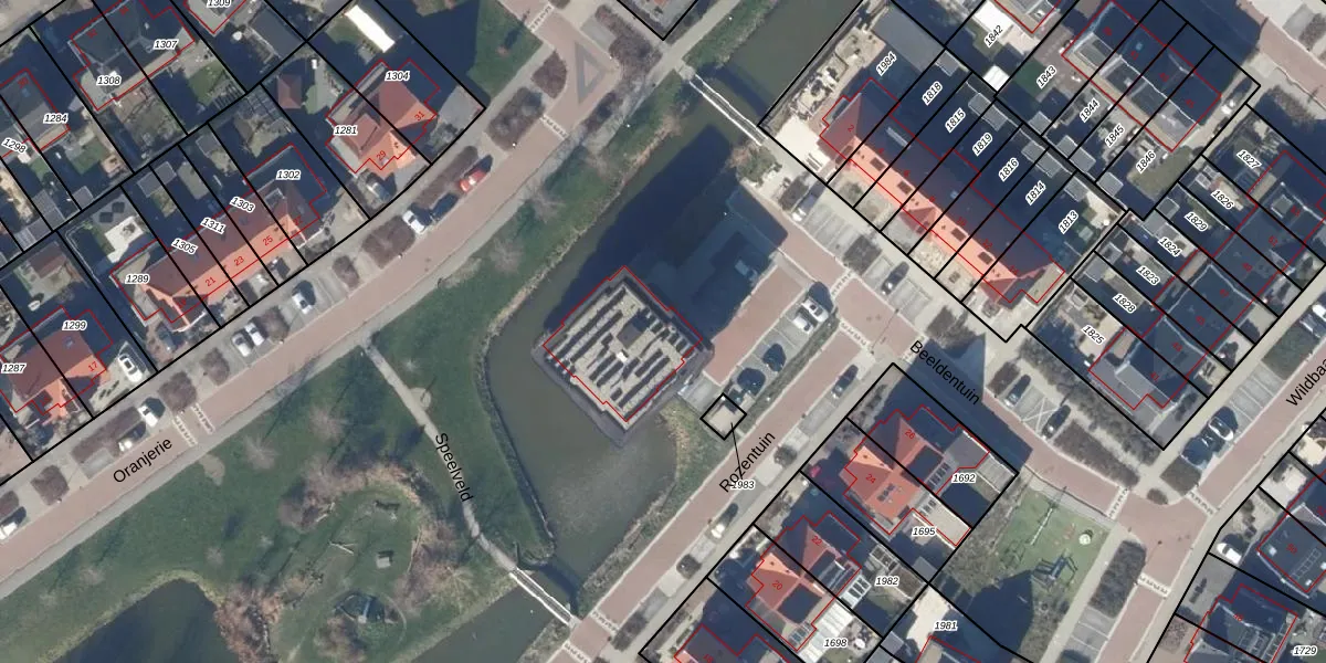 Het perceel waarop Beeldentuin 9 staat heeft een oppervlakte van 7,7 ha. Dit is een zeer groot perceel. De perceeloppervlakte wordt geregistreerd door het Kadaster. Gedetailleerde informatie over de maten van dit perceel kunt u vinden in het rapport Kadastrale kaart met maatvoering van Beeldentuin 9.