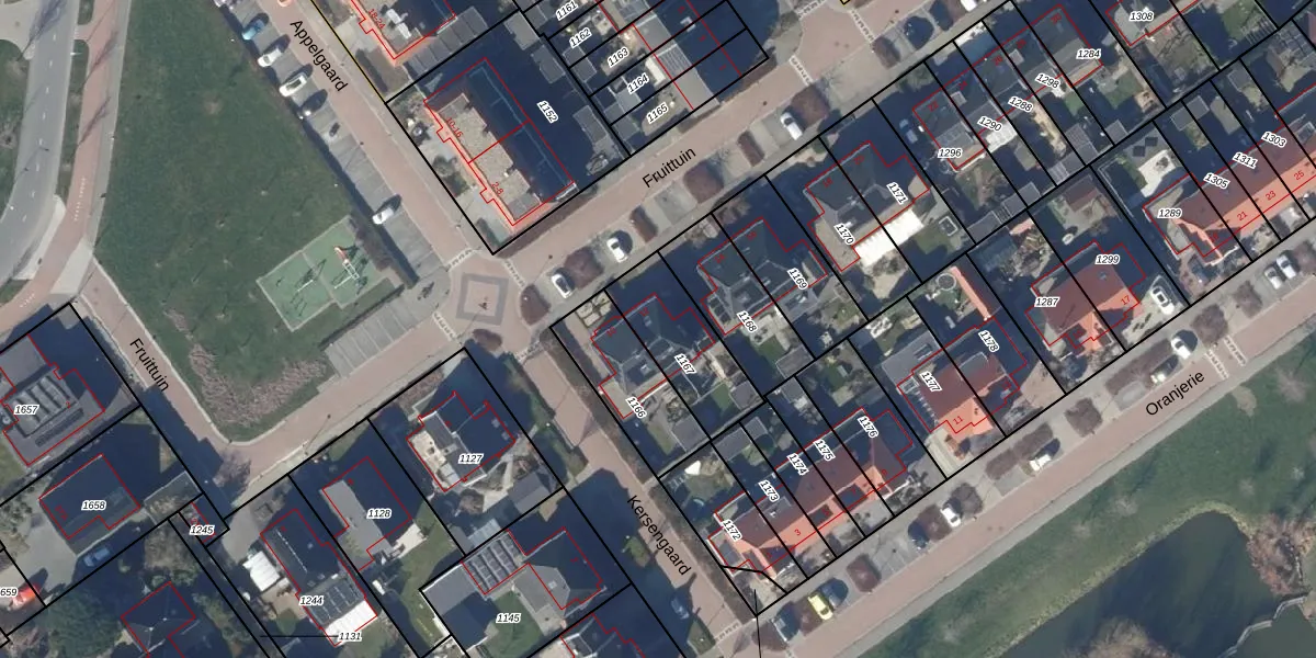 Het perceel waarop Fruittuin 12 staat heeft een oppervlakte van 283 m². Dit is een middelgroot perceel. De perceeloppervlakte wordt geregistreerd door het Kadaster. Gedetailleerde informatie over de maten van dit perceel kunt u vinden in het rapport Kadastrale kaart met maatvoering van Fruittuin 12.