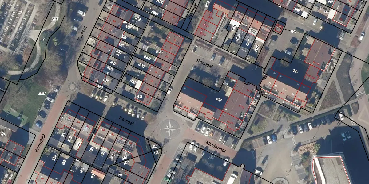 Het perceel waarop Middenhof 39 staat heeft een oppervlakte van 1000 m². Dit is een zeer groot perceel. De perceeloppervlakte wordt geregistreerd door het Kadaster. Gedetailleerde informatie over de maten van dit perceel kunt u vinden in het rapport Kadastrale kaart met maatvoering van Middenhof 39.