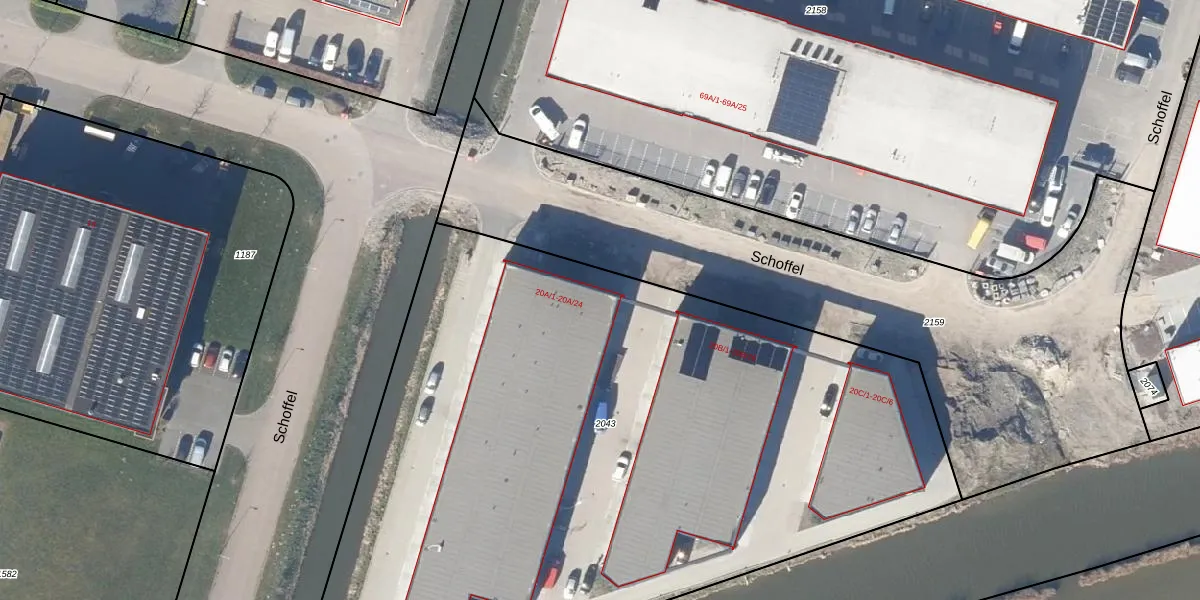 Schoffel 20-A-24 is gelegen op kadastraal perceel KGL02AB2043. Deze kadastrale aanduiding is uniek en wordt gebruikt door het Kadaster om eigendomsrechten en andere zakelijke rechten vast te leggen. Het perceel maakt onderdeel uit van de kadastrale gemeente Wester-Koggenland.