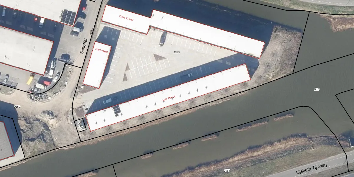 Het perceel waarop Schoffel 71-A-11 staat heeft een oppervlakte van 7985 m². Dit is een zeer groot perceel. De perceeloppervlakte wordt geregistreerd door het Kadaster. Gedetailleerde informatie over de maten van dit perceel kunt u vinden in het rapport Kadastrale kaart met maatvoering van Schoffel 71-A-11.