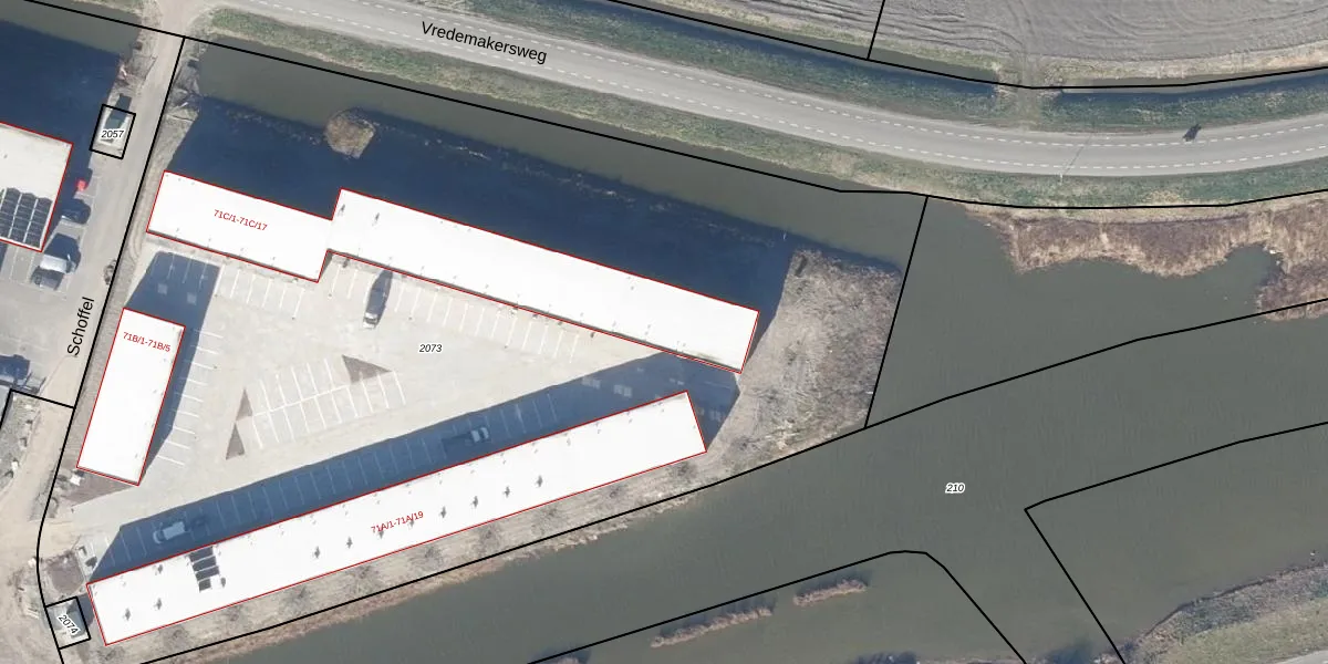 Schoffel 71-C-16 is gelegen op kadastraal perceel KGL02AB2073. Deze kadastrale aanduiding is uniek en wordt gebruikt door het Kadaster om eigendomsrechten en andere zakelijke rechten vast te leggen. Het perceel maakt onderdeel uit van de kadastrale gemeente Wester-Koggenland.